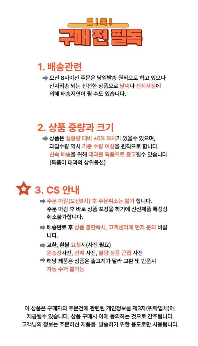 · 오전8시 주문마감, 산지 및 기상상황에 따라 출고일 1~5일 소요될수도 있음